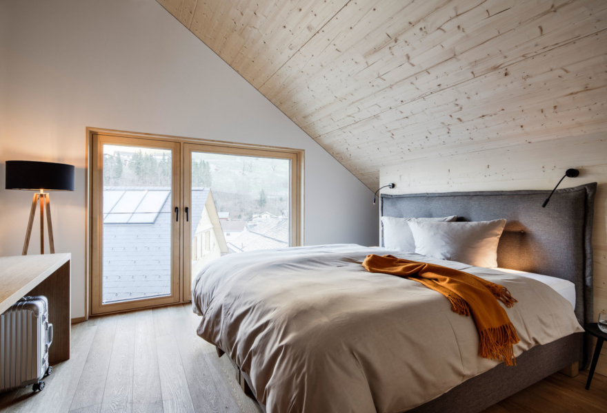 Berg oder See? Urlaub im Tempel 74 mit Blick auf das Felsmassiv der Kanisfluh und im Mesmerhaus mit Blick auf die Weite des Bodensees.