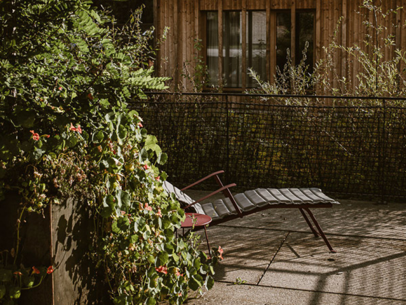 Schnappen Sie sich einen erfrischenden Drink, ein spannendes Magazin oder Ihre bessere Hälfte und ab gehts auf die Sonnenterrasse um Vitamin D zu tanken. Zwischen den Bäumen und Blumen mit Blick auf den Hausberg lässt es sich auf jeden Fall aushalten.